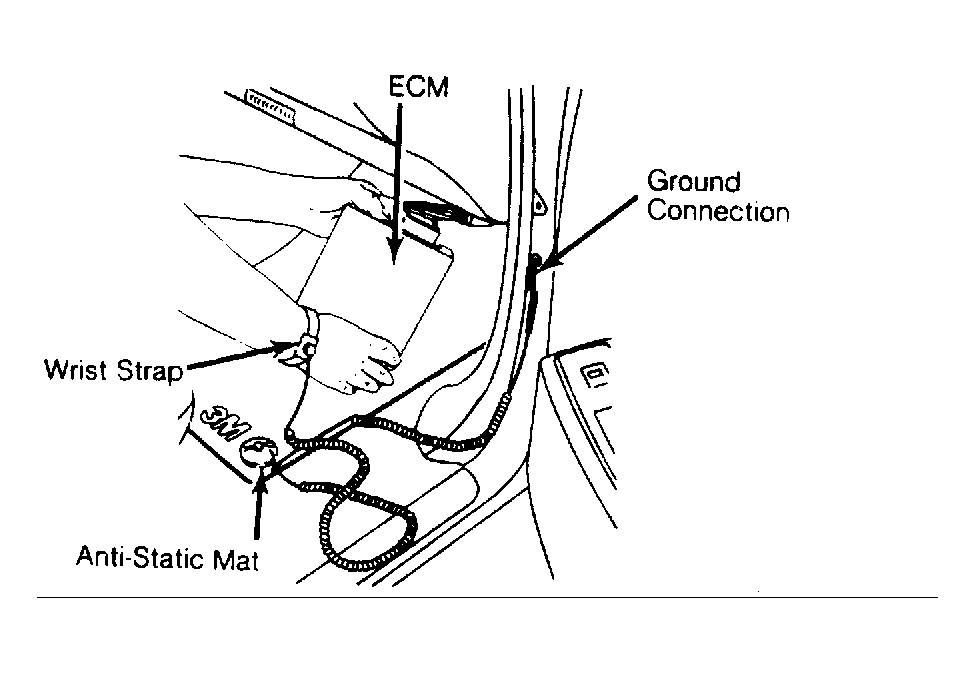 CAUTION: DO NOT  remove part from packaging until ready to install. Ground any static-proof package before opening. DO NOT  touch electrical terminals of components unless properly grounded. DO NOT  lay electrical components on car seat, carpeting or dashboard. Use electrostatic protection mat and ground strap whenever possible. See Fig 1.
