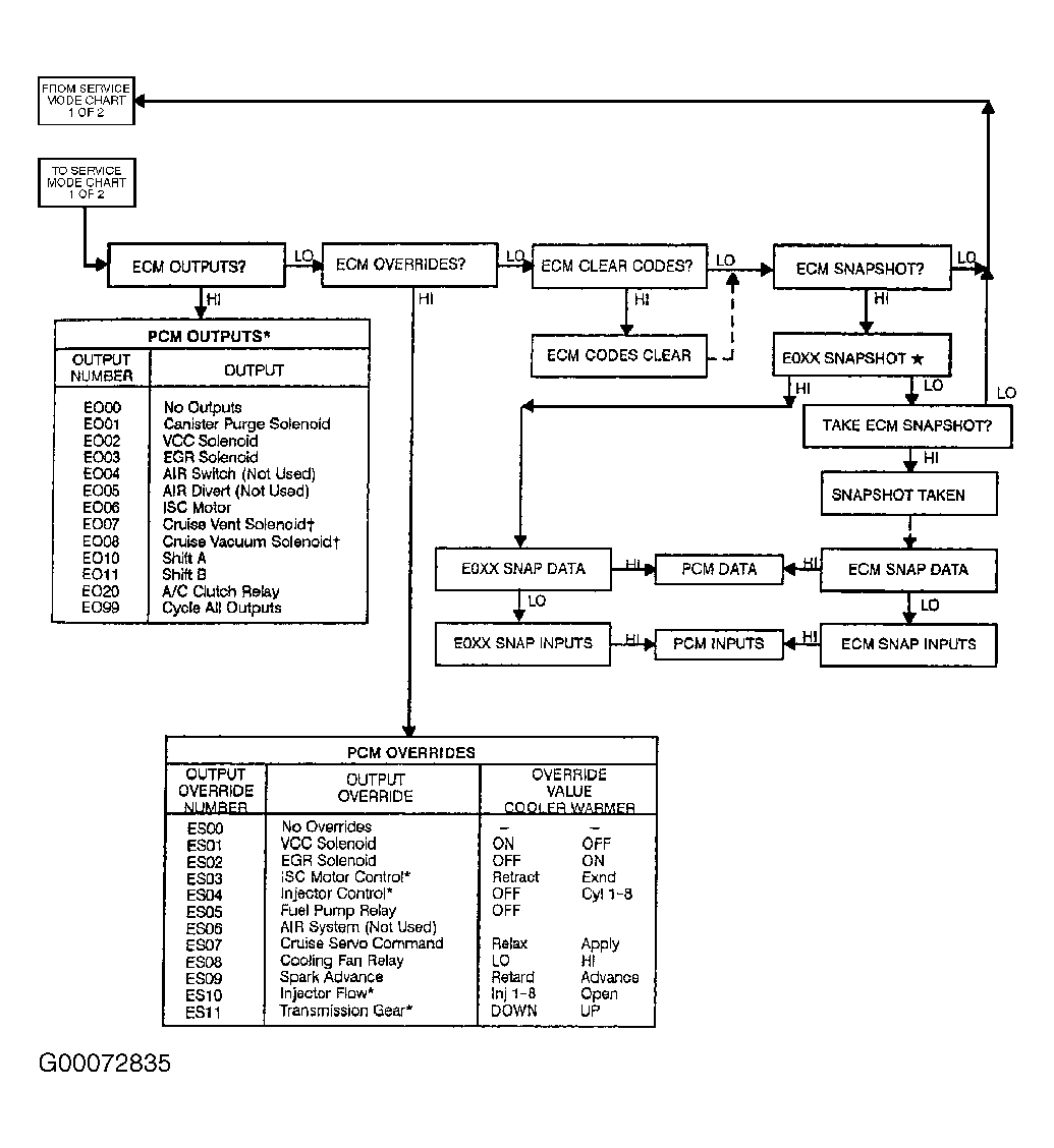 Test detects opening and closing of Idle Speed Control (ISC) nose switch at PCM terminal A7. See Figure . HI means throttle switch is open and PCM has 5 volts at throttle switch input. LO means throttle switch is closed and PCM has zero volts at throttle switch input. X means throttle pedal has been depressed and a change in switch state has been detected.