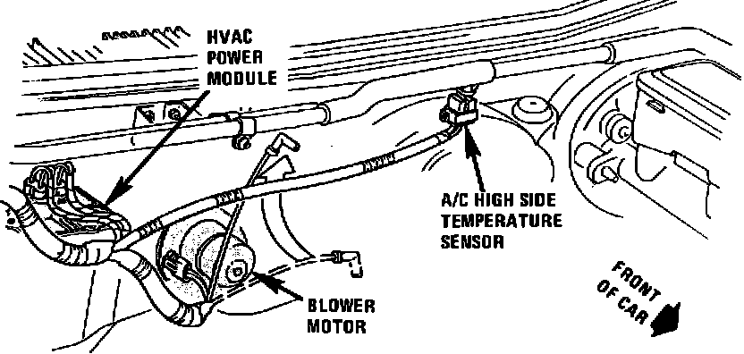 The HVAC Power Module is located on the Center Rear of Engine Compartment, on Cowl.