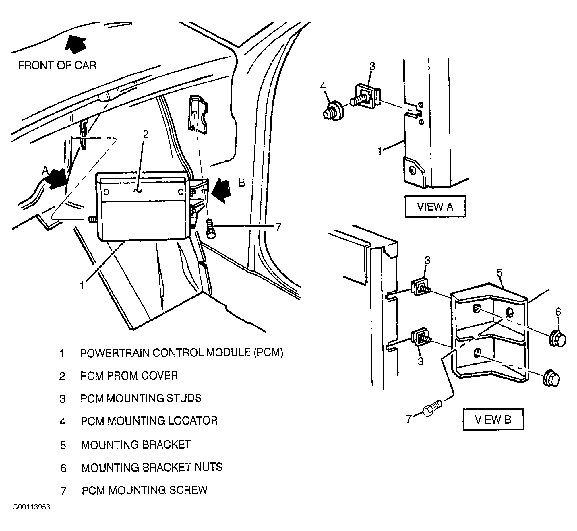 - Remove screw mounting PCM and PCM bracket to body. See Fig 1 .