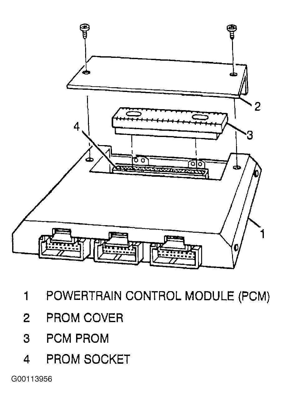 Use two fingers to push both retaining clips back away from the PROM at the same time. Grasp the PROM at both ends and lift up and out of the PROM connector. Do not open the PROM. Use of any other PROM removal method may cause damage to the PROM or PROM connector.