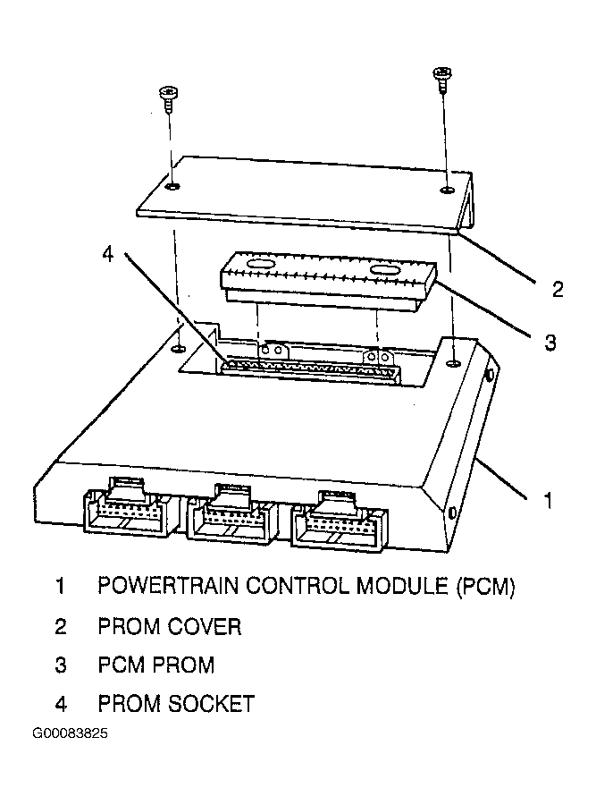The PCM consists of two separately serviceable parts: PCM and PCM PROM. The PROM plugs into PCM and is located under PROM cover. See Fig 2 .