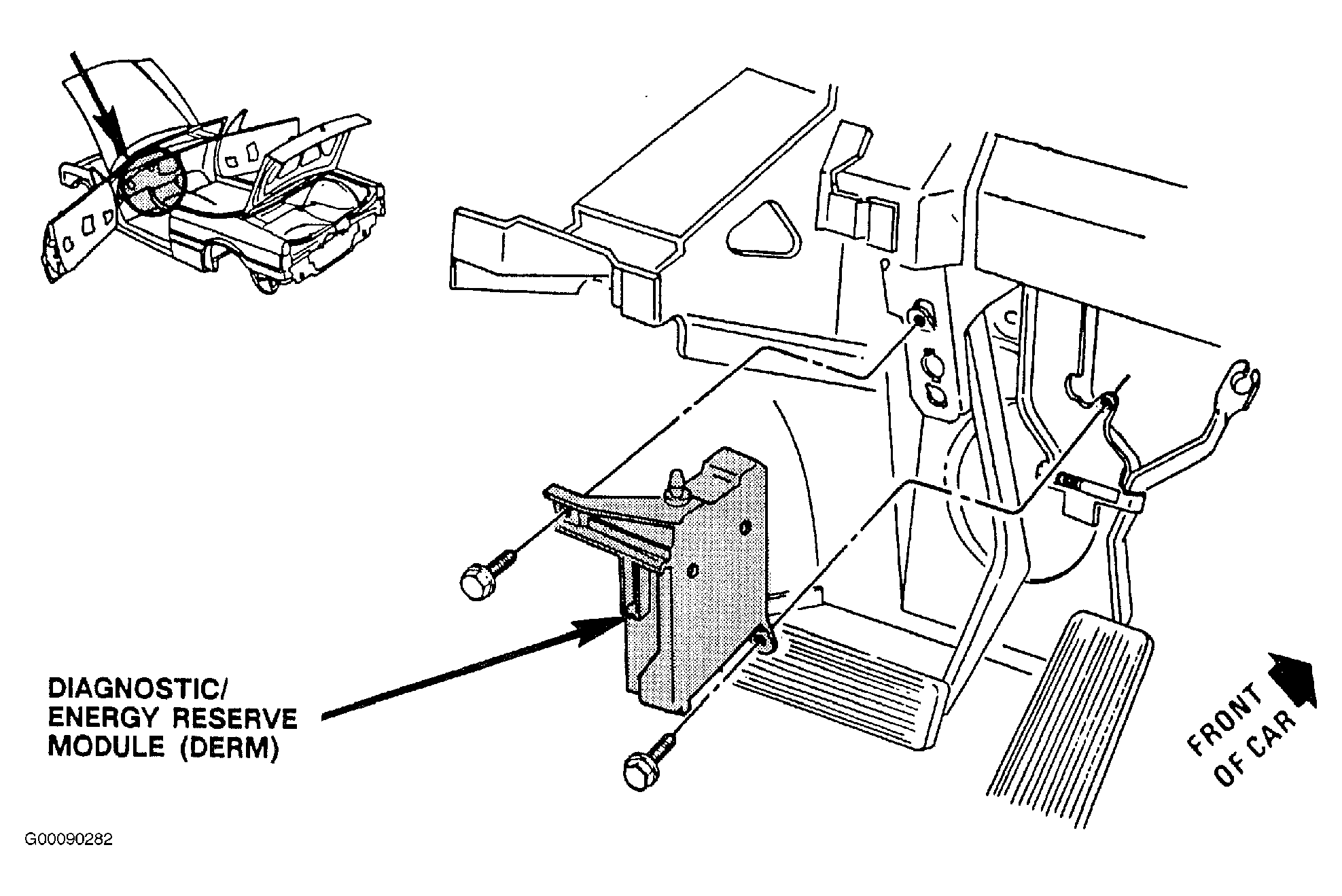 Diagnostic/Energy Reserve Module (DERM) Above Brake Pedal. See Fig 4 .