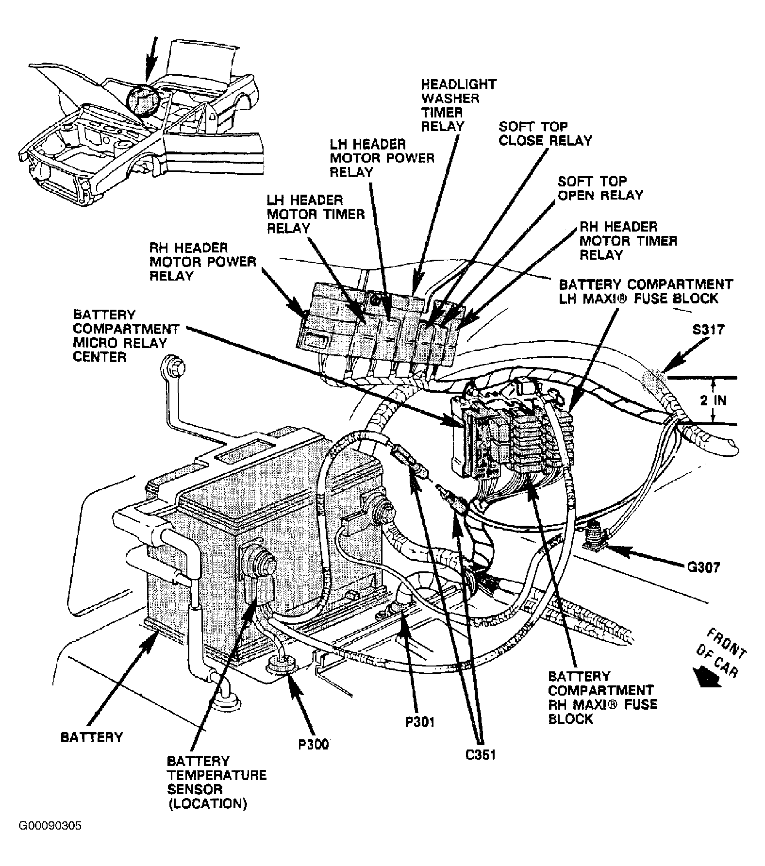 Battery Compartment Micro Relay Center Behind Passenger Seat, On Quarter Panel. See Fig 1 .