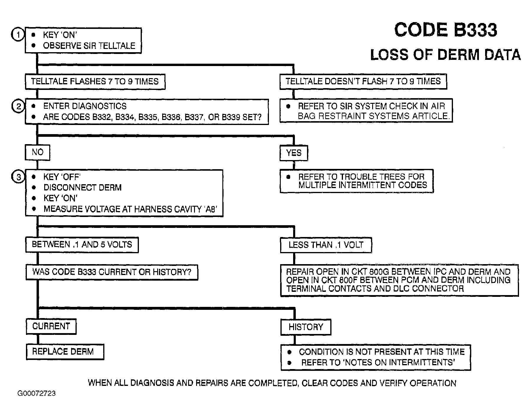 - Under normal conditions, the DERM will cycle the telltale between 7 and 9 times at key ON. If this does not happen, a power, ground, or internal DERM failure is indicated.