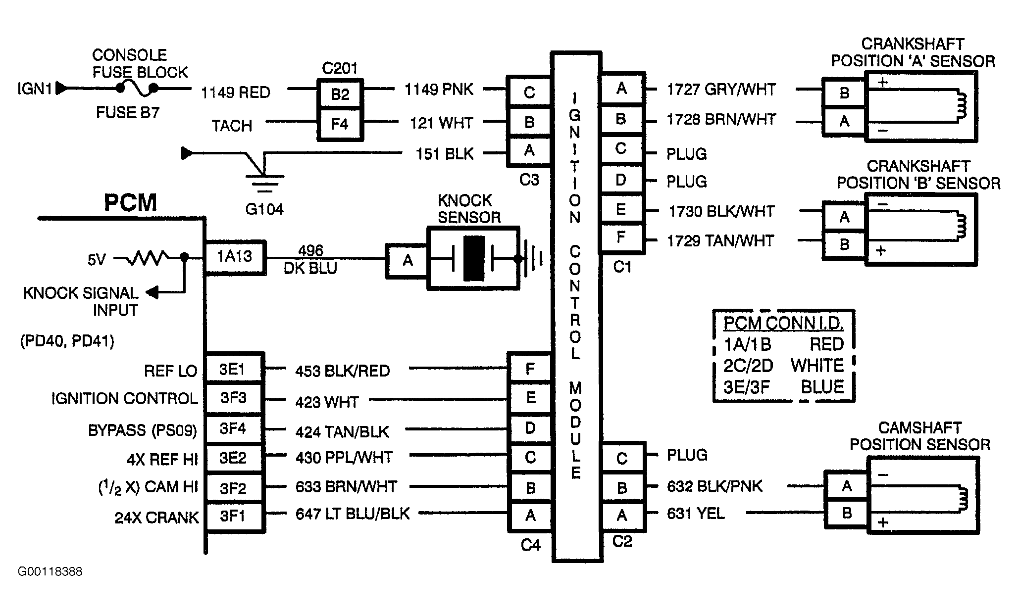 - Checking for 4X reference pulses on CKT 430 from the Ignition Control Module to the PCM. If PCM terminal "3E2" has between 30 and 100 Hertz, the PCM is receiving 4X reference pulses.