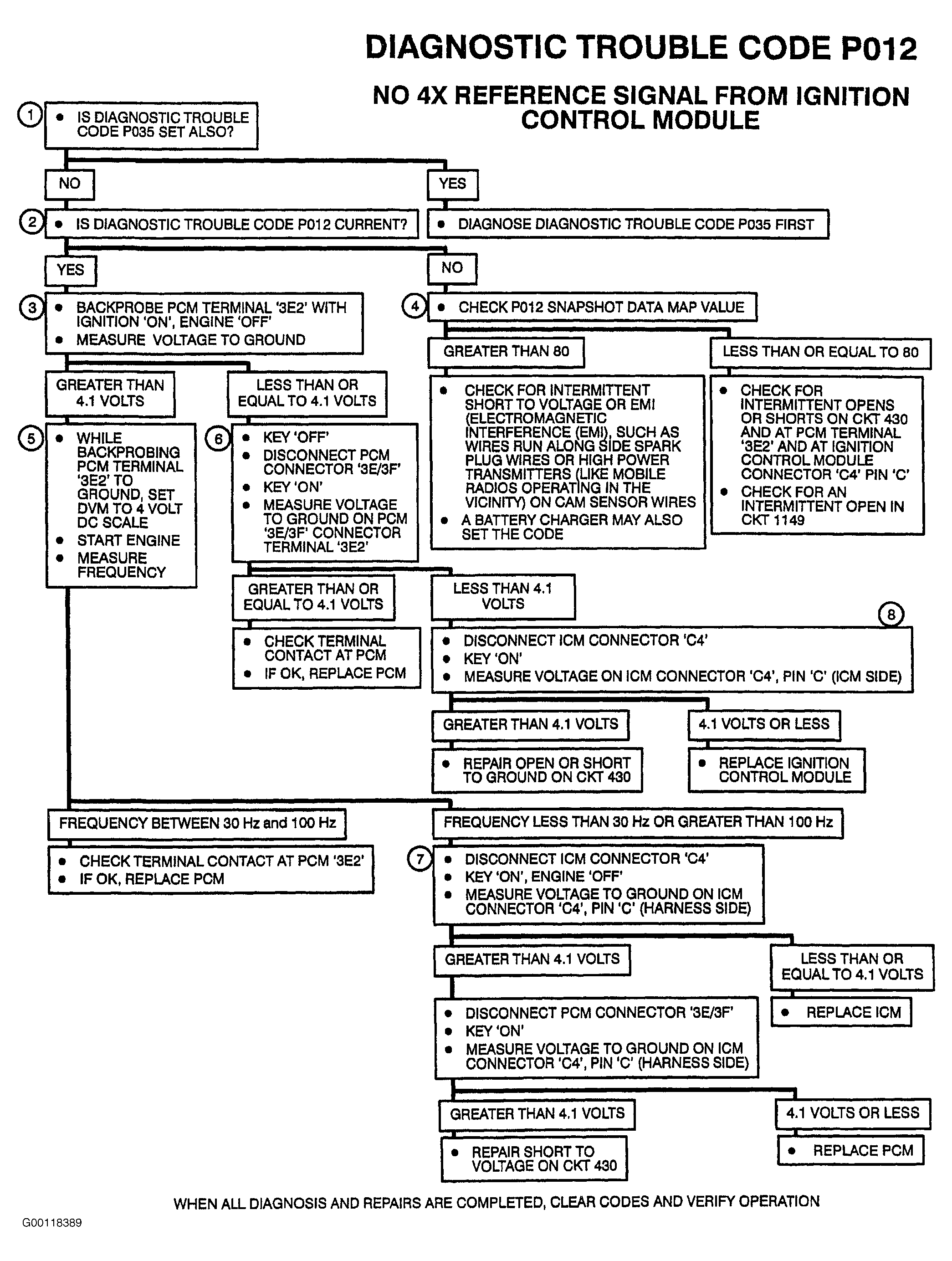 DTC P012: No 4X Reference Signal From Ignition Control Module: Action
