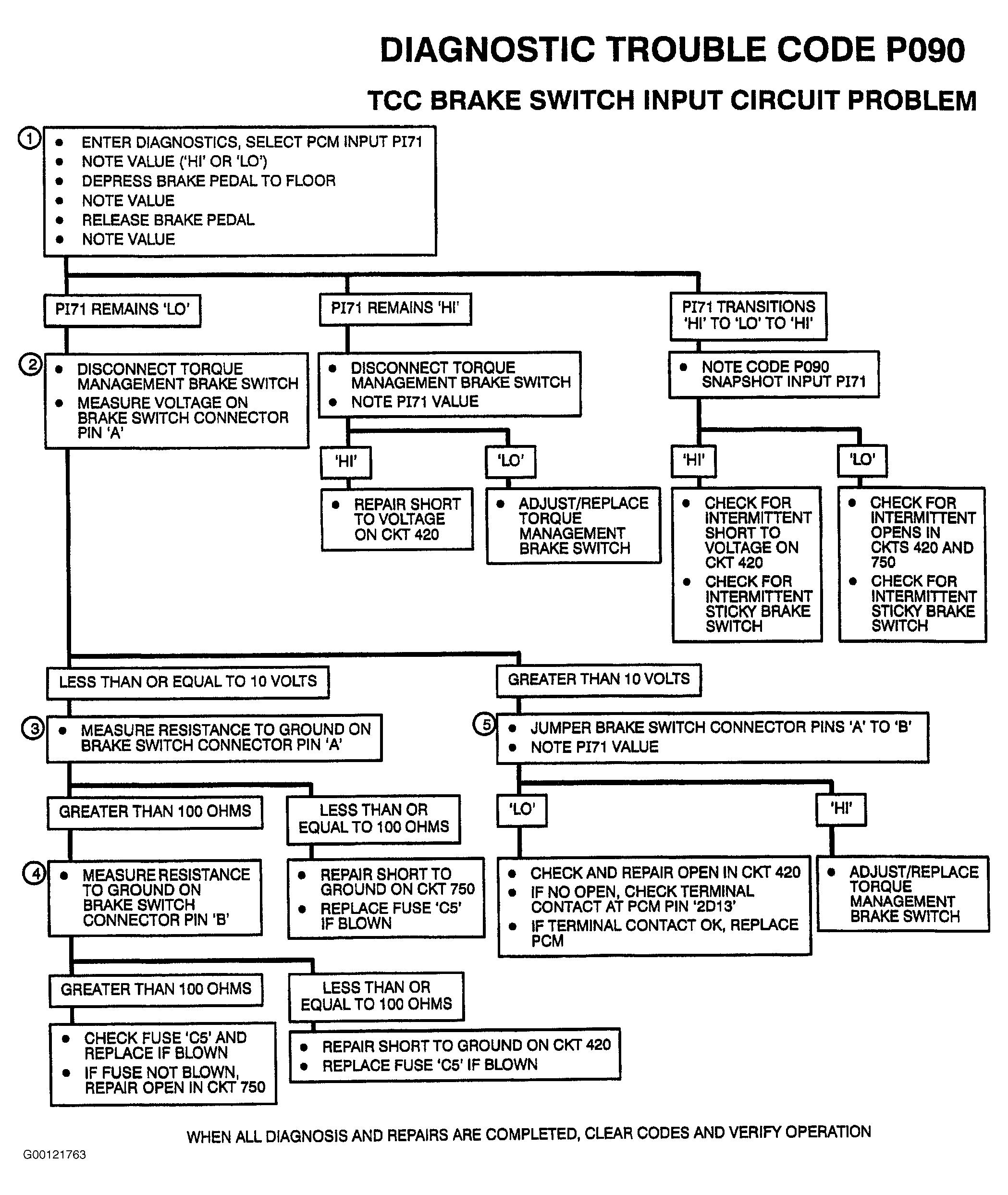 DTC P090: TCC Brake Switch Input Circuit Problem: Action