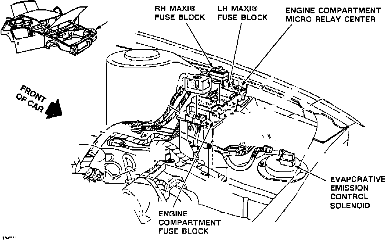 located in engine compartment fuse block on LH side of engine compartment, on wheelhouse.