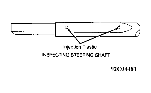 Steering column is designed to collapse if impacted during a collision. Steering shaft and column jacket are both 2-piece units which are internally injected with plastic. Plastic protrudes from holes in each unit keeping 2 separate pieces held together as one unit. See Figure - Figure . If the column or steering wheel is forcefully impacted, plastic pieces break off, allowing column and shaft to collapse.