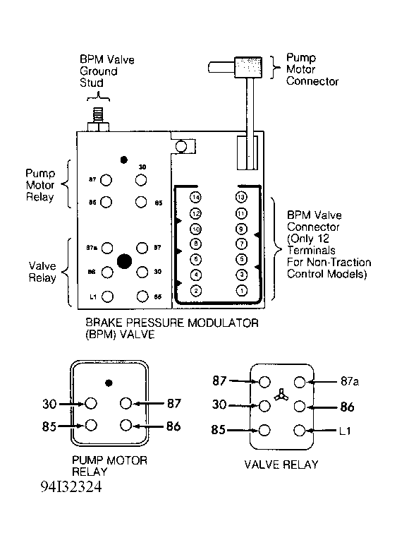 Fig 2: Brake Pressure Modulator Valve Assembly & Relay Connector Terminals ID