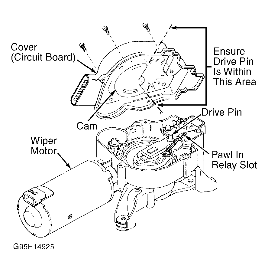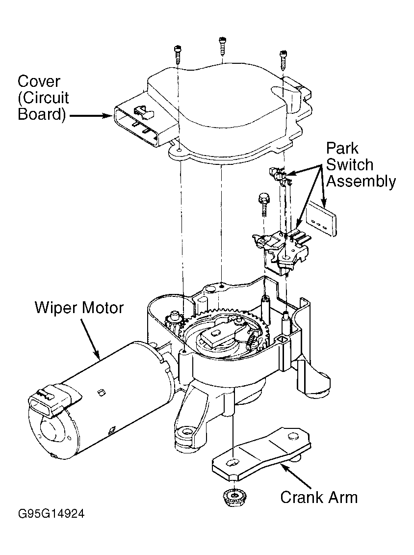 5. Using a DVOM, check continuity of Yellow wire between wiper motor 3-pin and 8-pin connectors. If there is no continuity, repair open Yellow wire. If there is continuity, check for poor wiring connection at wiper motor. If connection is okay, replace wiper motor cover (circuit board). See Figure and Figure . If symptom still exists, replace wiper motor.