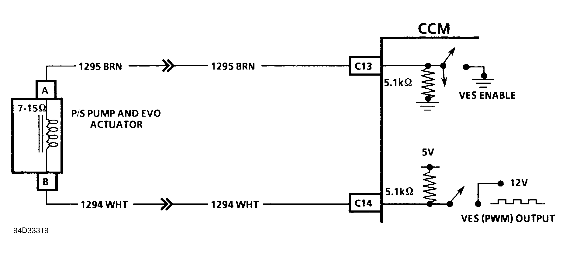 CCM applies a Pulse Width-Modulated (PWM) current to the VES actuator through Brown and White wires. Every ignition cycle, CCM checks for a fault in this circuit under the following conditions.