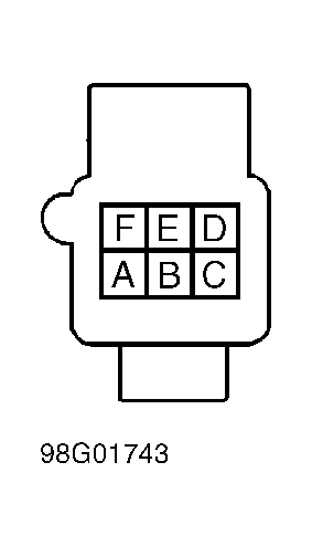 5. Disconnect memory function switch Gray, 6-pin connector. Using DVOM, measure resistance between memory switch terminal "E" and each of the following terminals. See Fig 1 .