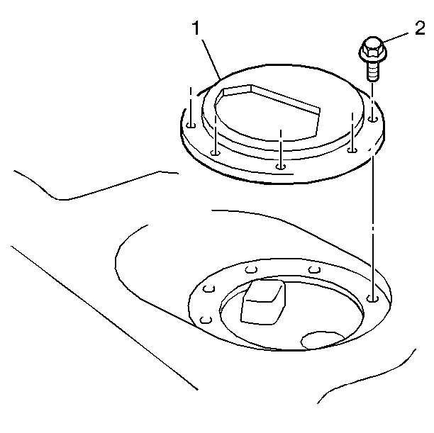 3. Install the fuel sender assembly hold down plate (1). See Figure.
