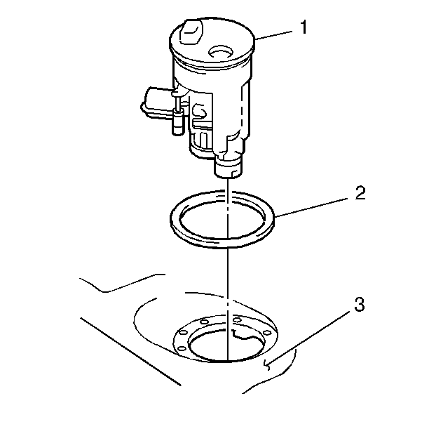 1. Position the new fuel sender assembly O-ring (2) on the fuel sender assembly (1). See Figure.