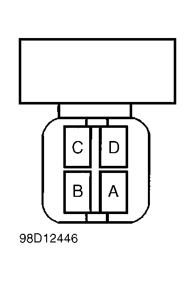 4. Turn ignition off. Connect a 3-amp fused jumper wire between right mirror connector C2 terminals "C" (Black/White wire) and "D" (Light Blue/Black wire). See Figure . Turn ignition on. Using scan tool, monitor MIRROR HORIZONTAL POSITION voltage. If horizontal position sensor voltage is less than 0.1 volt, go to next step. If horizontal position sensor voltage is greater than 0.1 volt, go to step  9 .