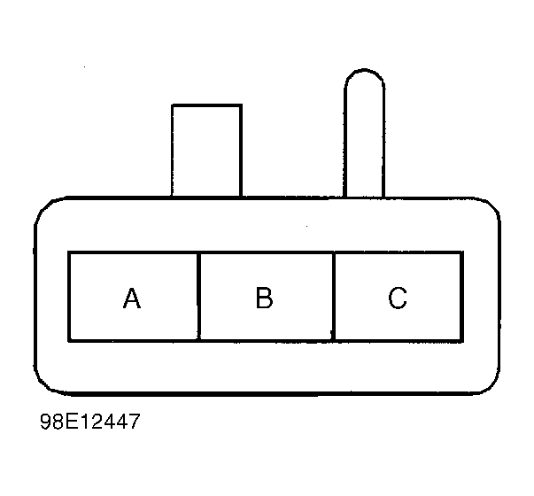 4. Turn ignition off. Disconnect left seat lower motor connector C2. Turn ignition on. Using DVOM, measure voltage between left seat lower motor connector C2 terminal "A" (Purple wire) and ground. See Figure . If voltage is 4.0-5.5 volts, go to next step. If voltage is not 4.5-5.5 volts, go to step  7 .