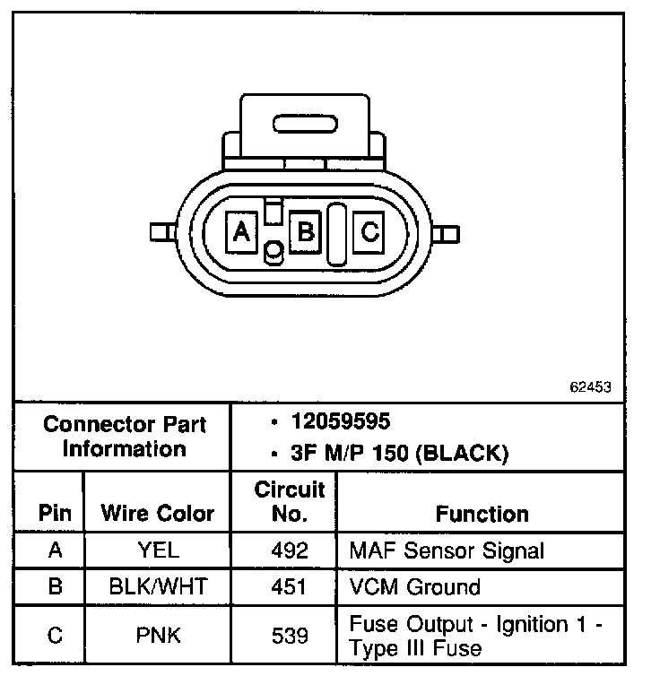 Mass Air Flow (MAF) Sensor Connector: