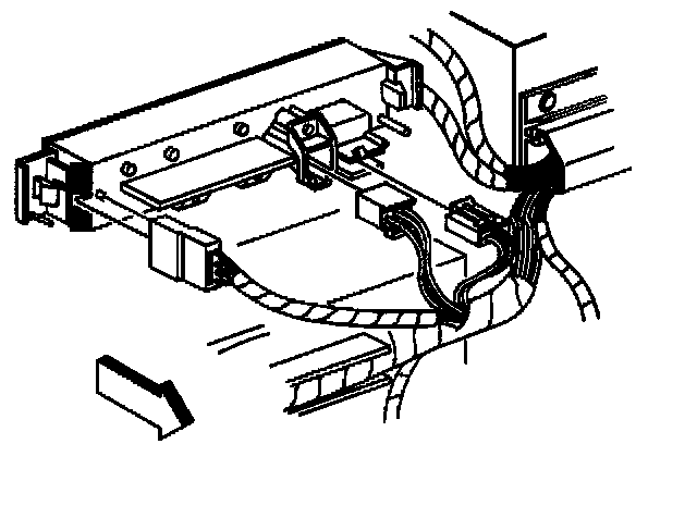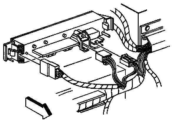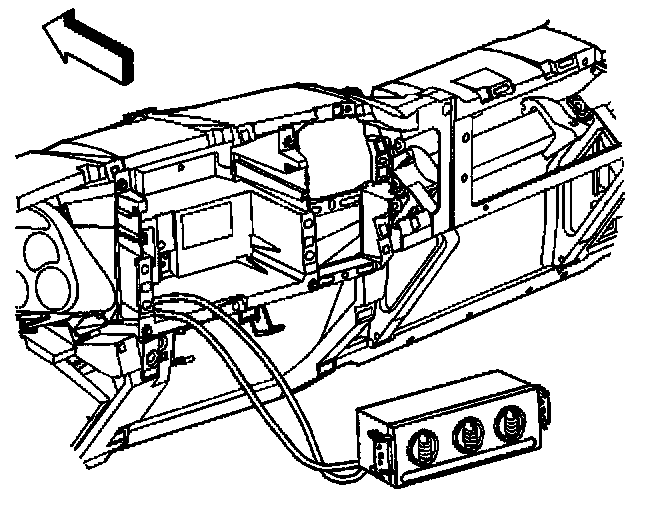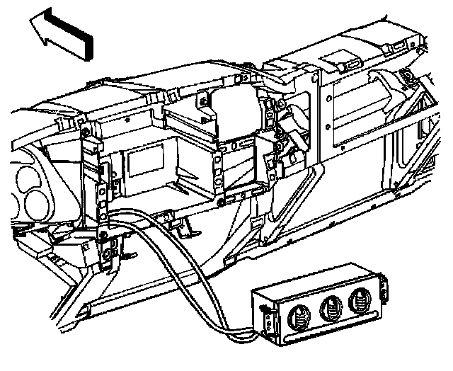 3. Remove the heater control assembly by firmly depressing and holding the retaining tabs and then sliding the assembly away from the dash.