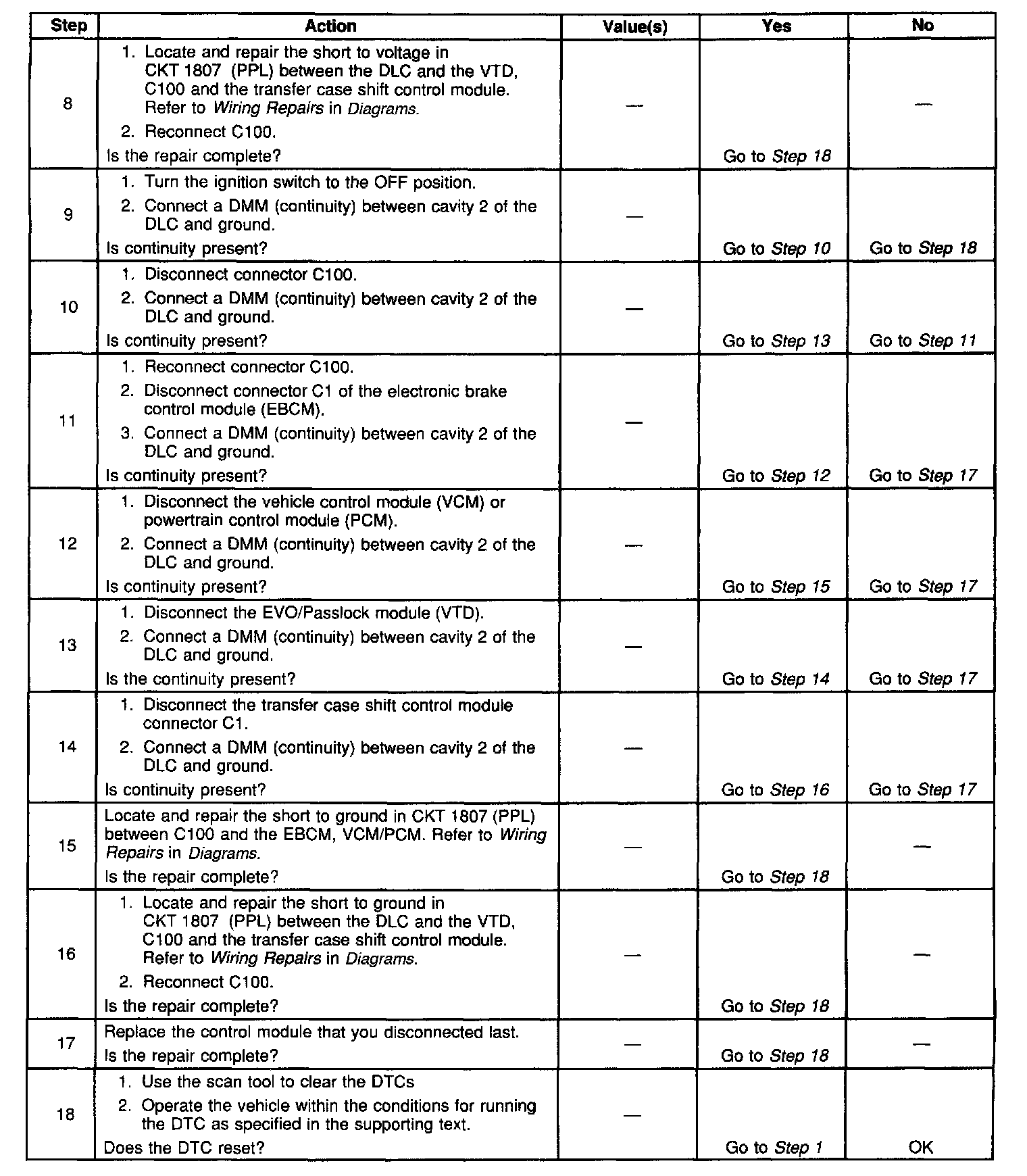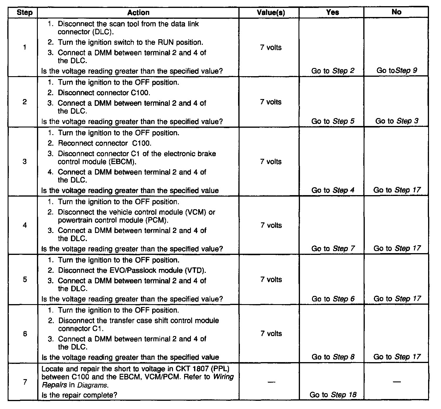 ^ When the class 2 serial data circuit is shorted to ground, U1300 or U1305 will be set. Refer to DTC U1300 Class 2 Data Link Low or DTC U1300 Class 2 Data Link Low.