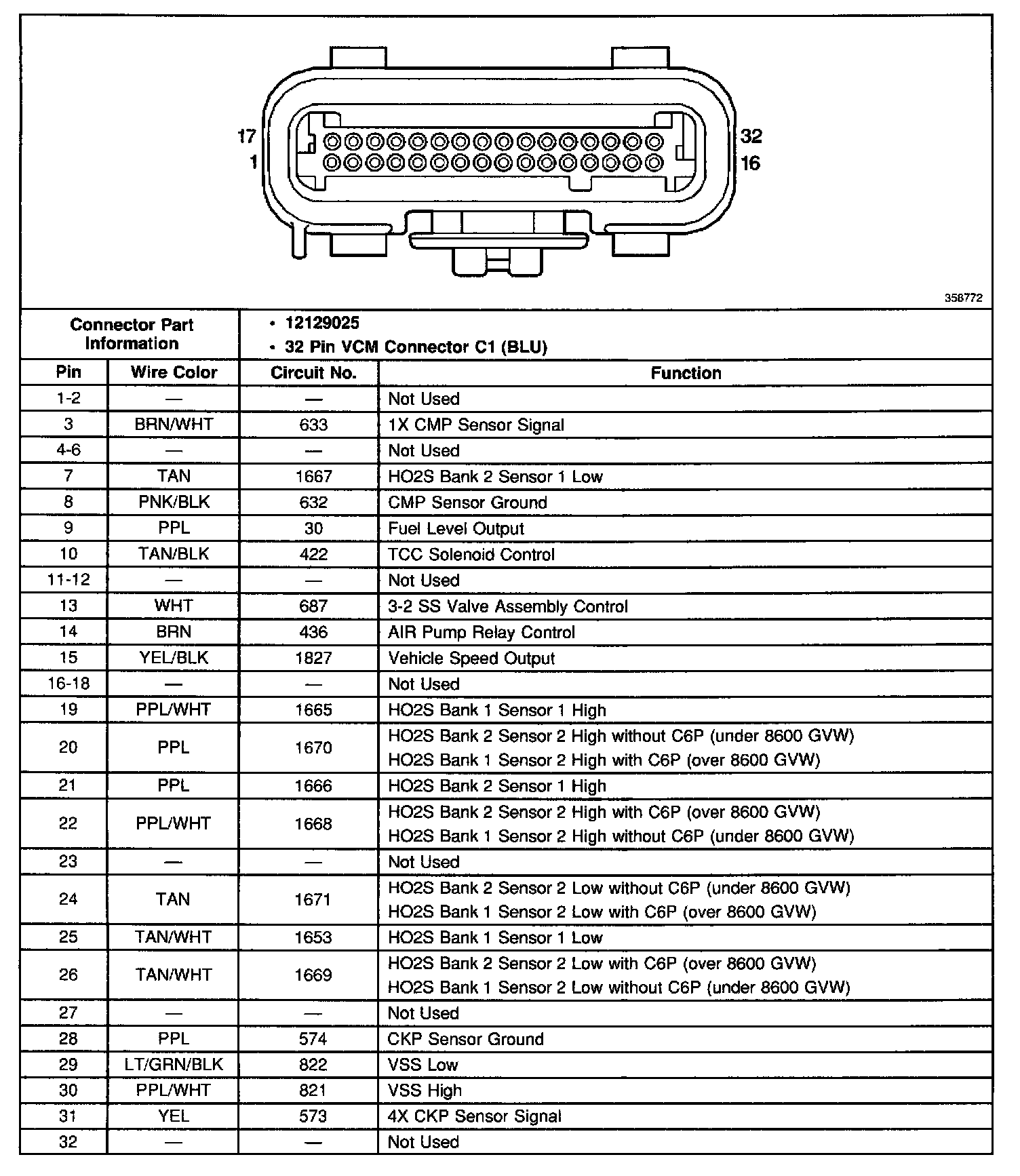 Vehicle Control Module (VCM) Connector C1: