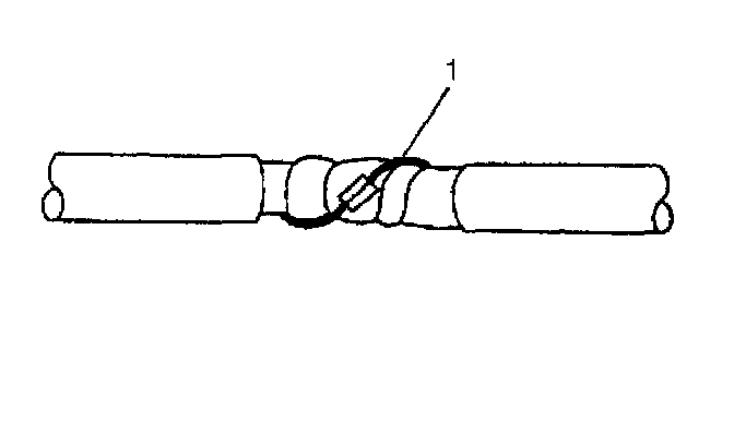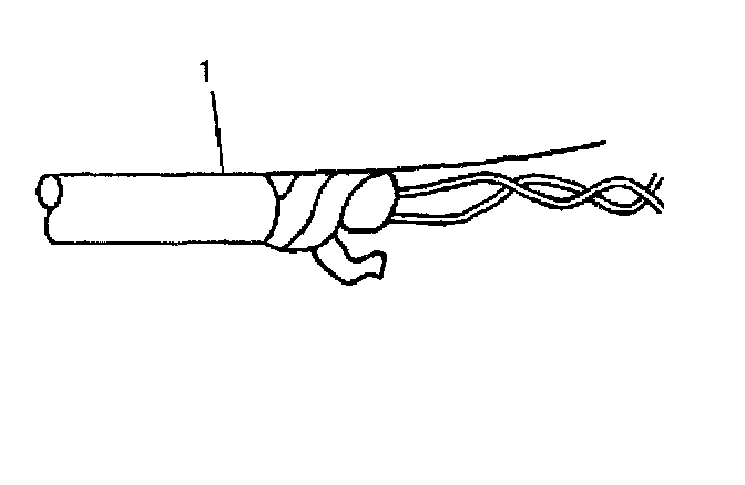 1. Remove the outer jacket (1). Use care not to cut into the drain wire of the mylar tape.