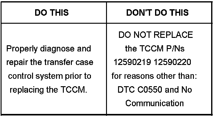 Guidelines for Replacement of Transfer Case Control Module (TCCM)