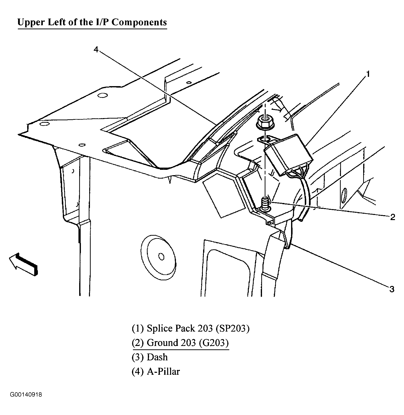 | G203 | On Left Upper Instrument Panel, At A-Pillar (Fig 13 ) |