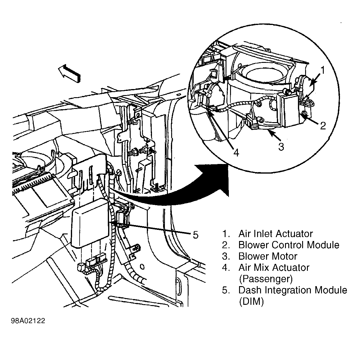 | Dash Integration Module (DIM) | On right side of dash, near blower motor. See Figure . |