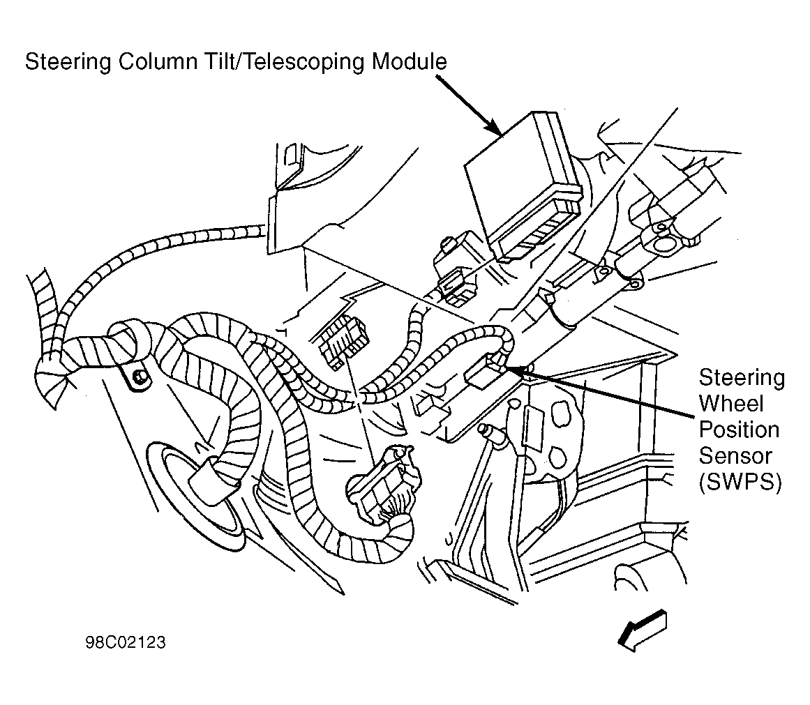 | Steering Column Tilt/Telescoping Module | Behind left side of dash, left of steering column. See Figure . |