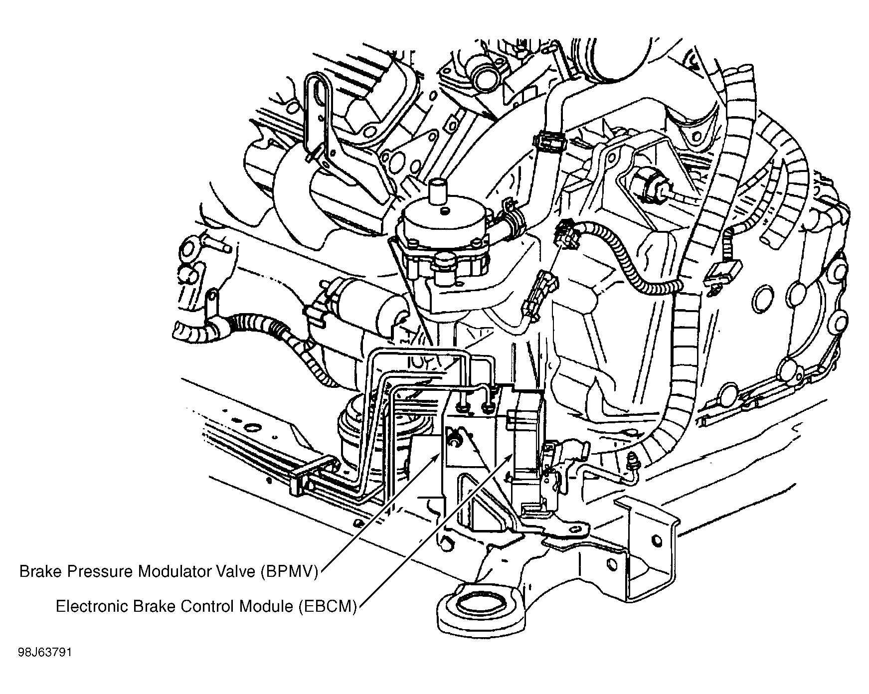 | Electronic Brake Control Module (EBCM) | On left front corner of engine compartment, below air cleaner housing. See Figure . |
