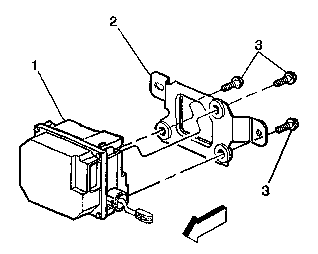 6. Remove the cruise control module bracket (2) from the cruise control module (1).