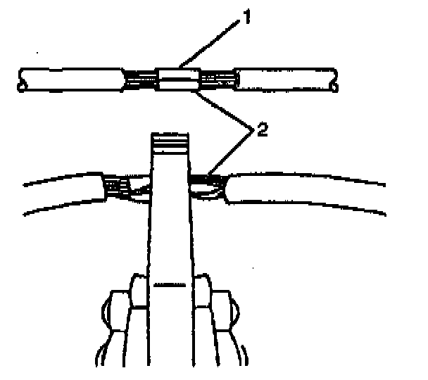 ^ Ensure that each splice is at least 40 mm (1.5 in) away from other splices, harness branches and connectors. This helps prevent moisture from bridging adjacent splices and causing damage.