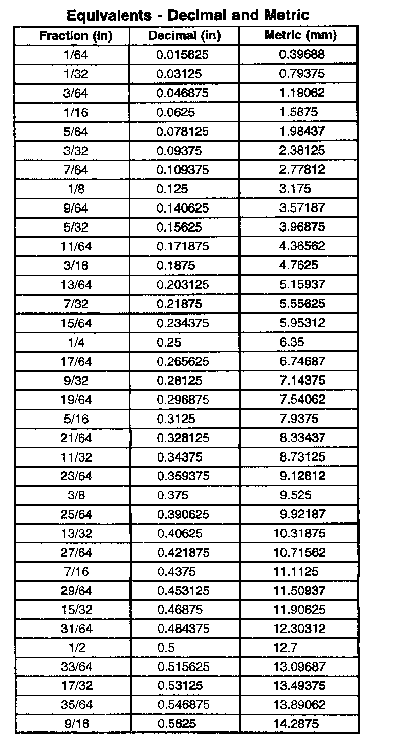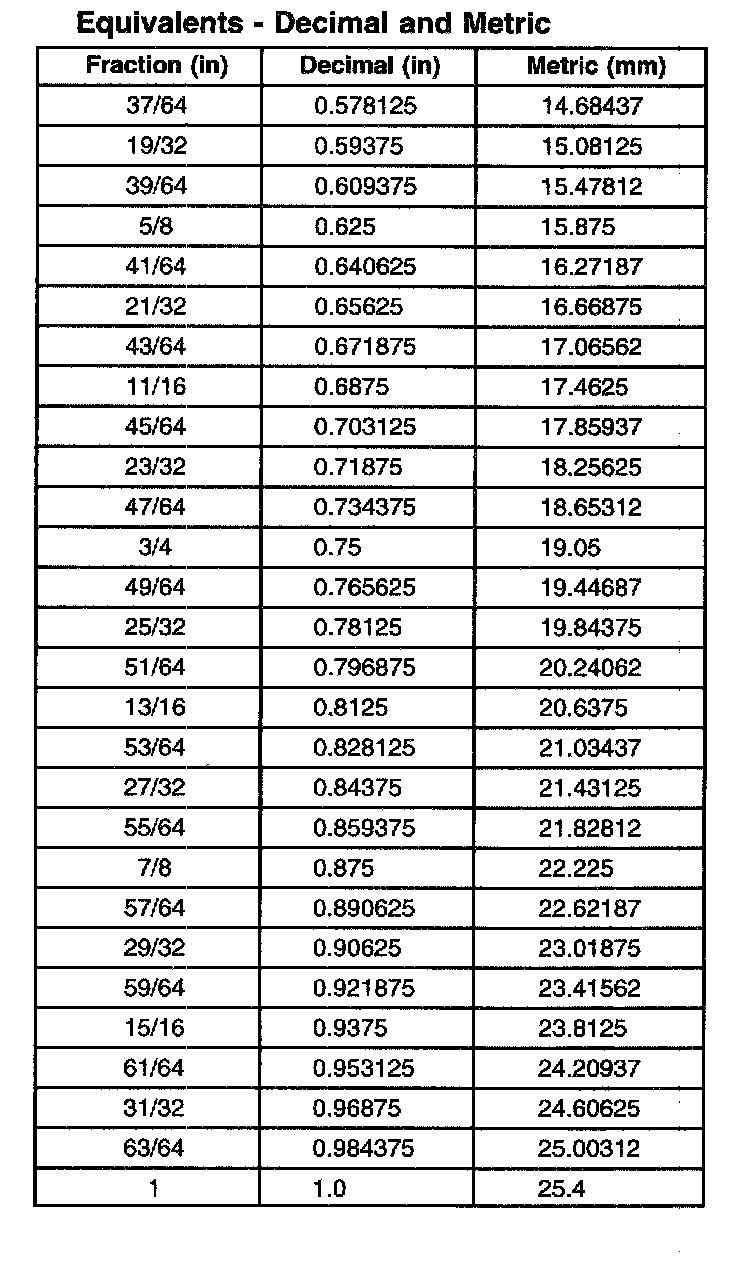 Equivalent - Decimal and Metric