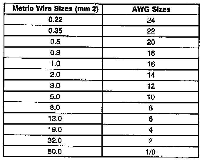 Wire Size Conversion Table: