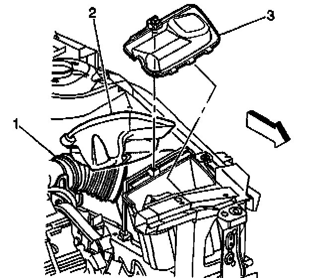 3. Remove the screw retaining the intake air duct/resonator (3) to the PCM housing.