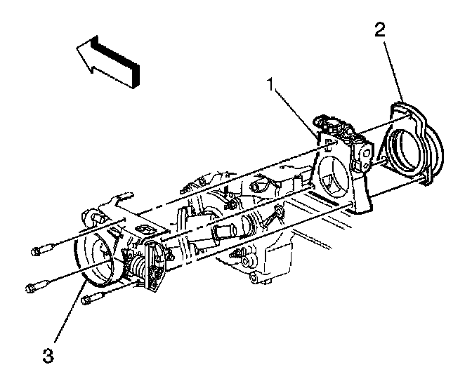 6. Remove the TP sensor mounting bolts (3) from the TP sensor (2).