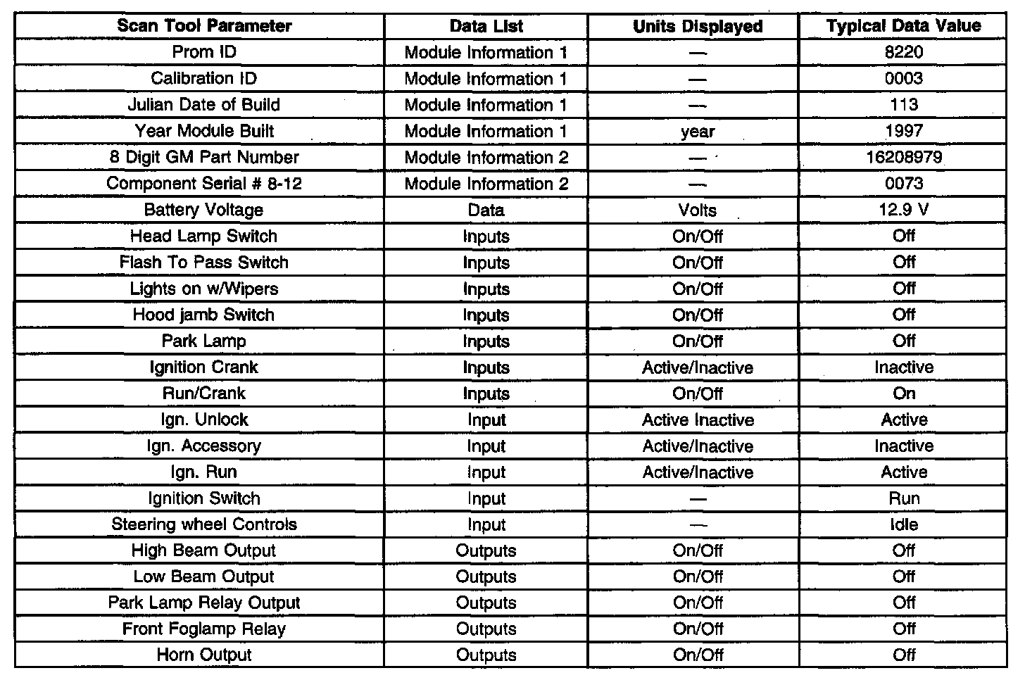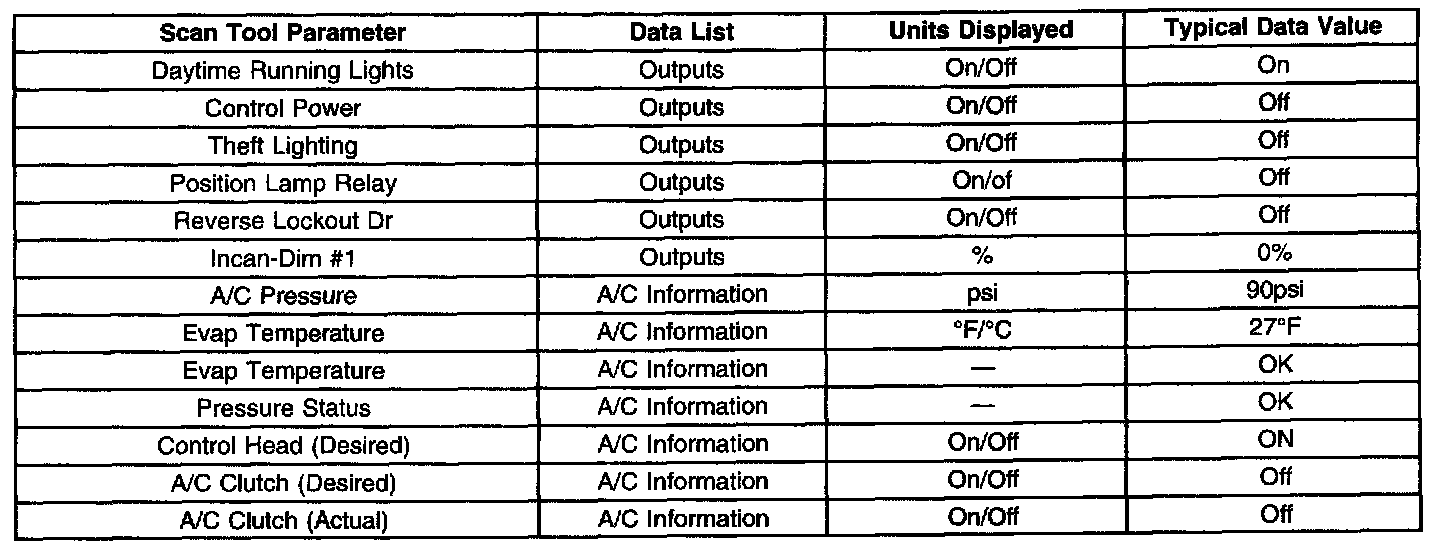 Scan Tool Data List