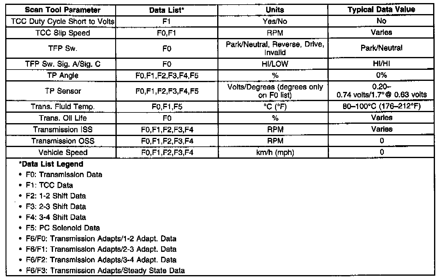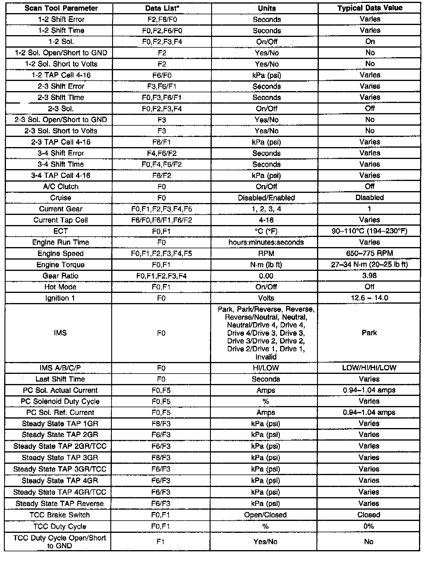 Only the parameters listed are used for diagnosing. If a scan tool displays other parameters, the values are not recommended by General Motors for use in diagnosis.