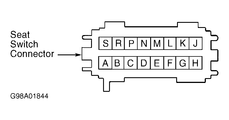 - Disconnect power seat switch connector. Using scan tool, observe HEADREST UP parameter. Connect fused jumper wire (3-amp) between battery voltage and seat switch connector terminal "K" (White/Black wire). See Figure . If HEADREST UP parameter changes state, go to step 12 . If HEADREST UP parameter does not change state, go to step 9 .