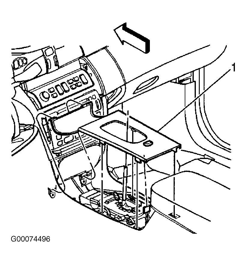 - Align the front edge of the console trim plate (1). See Fig 5 . Lower the console trim plate into place over the shift handle. Connect the traction control switch electrical connector.