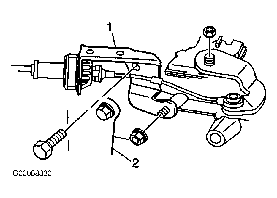 - Install the cable at the transaxle cable brackets (1). See Figure .