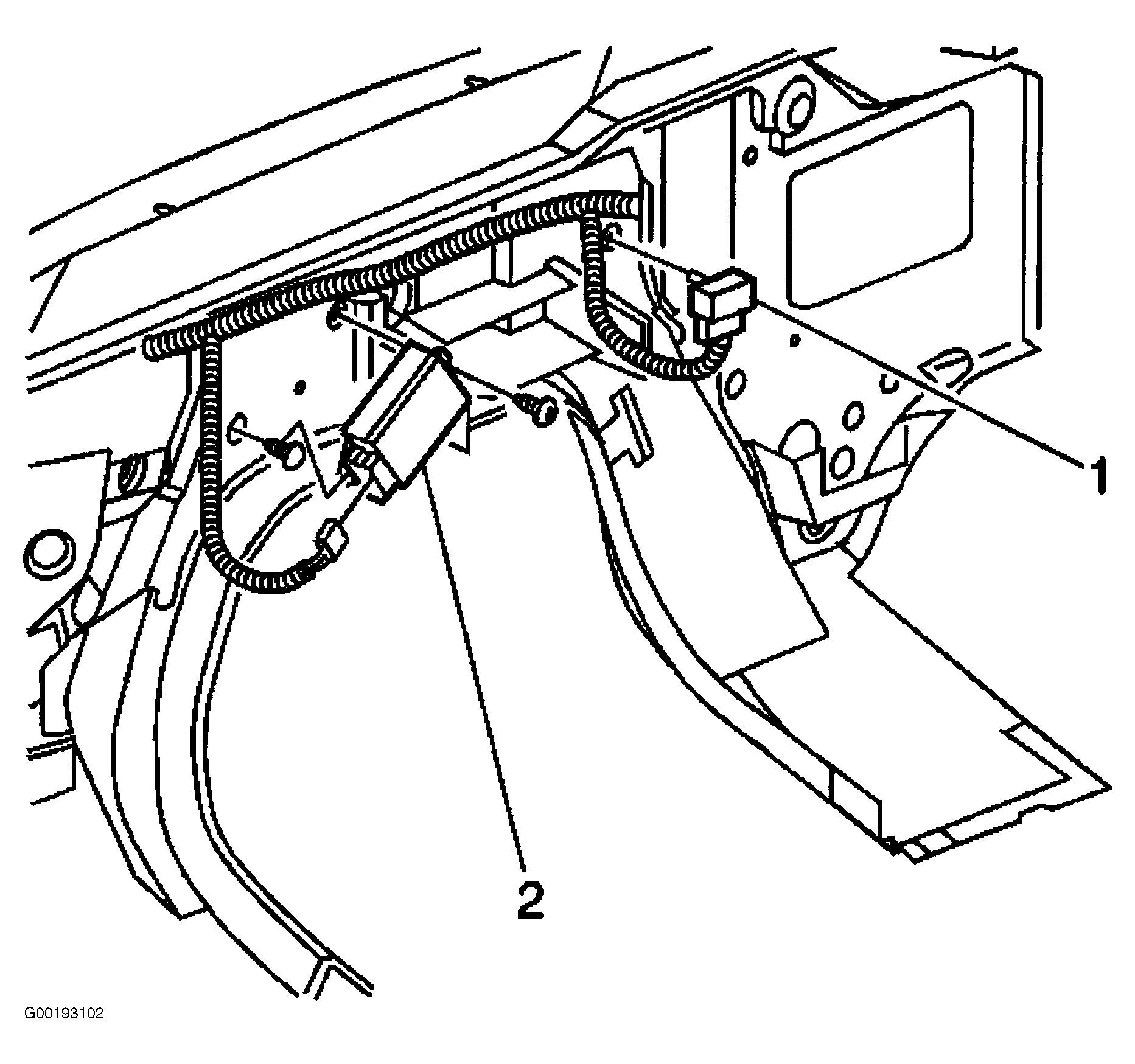 Install remote control door lock receiver (2) to vehicle. Install plastic fasteners that retain remote control door lock receiver (2) to sound insulation. Connect electrical connector to remote control door lock receiver (2). Initiate transmitter programming or reprogramming. See TRANSMITTER PROGRAMMING . Install engine cover. Connect negative battery cable. Refer to Fig 1 .