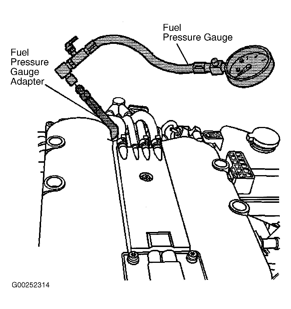Fuel Pressure Gauge (J-34730-1A) and Fuel Pressure Gauge Adapter (J-42242) are required to perform this procedure. See Figure