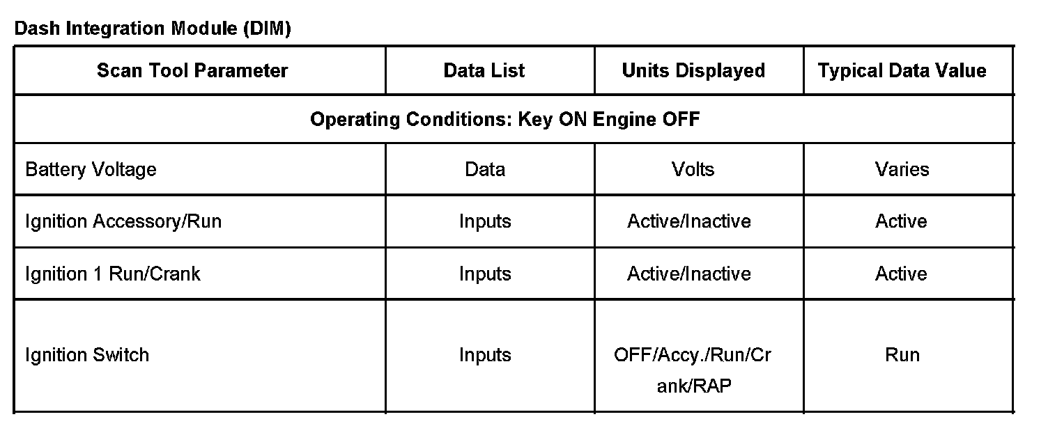 Scan Tool Data List - Dash Integration Module (DIM)
