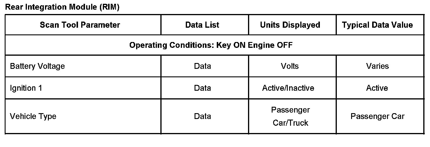 Scan Tool Data List - Rear Integration Module (RIM)