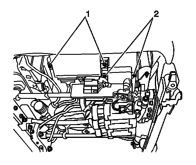 1. Install the heated seat control module and install the retaining screws (2).