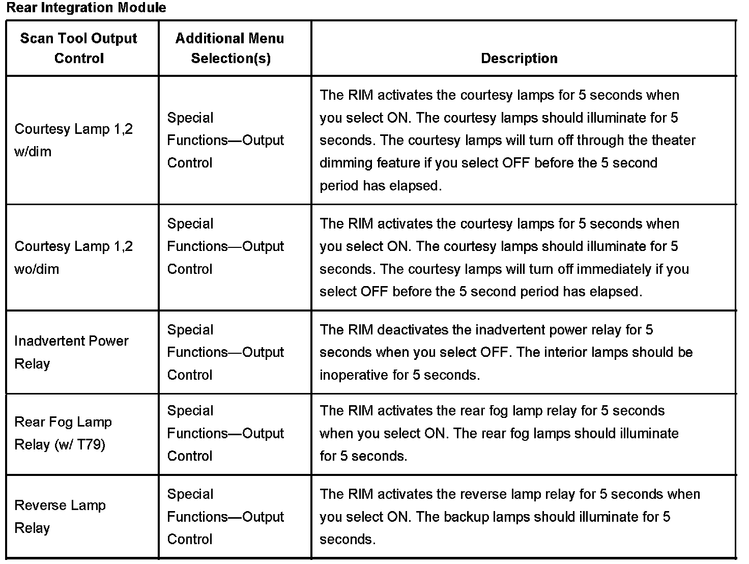 Scan Tool Output Controls - Rear Integration Module (RIM)