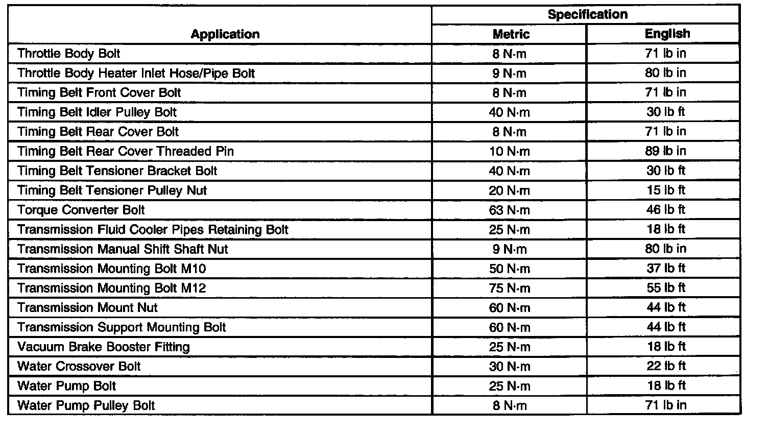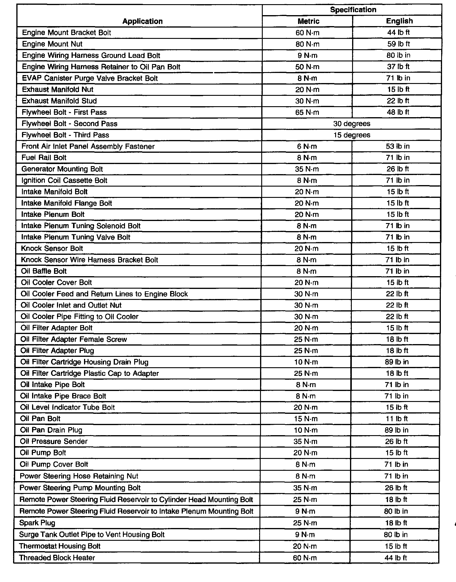 Fastener Tightening Specifications